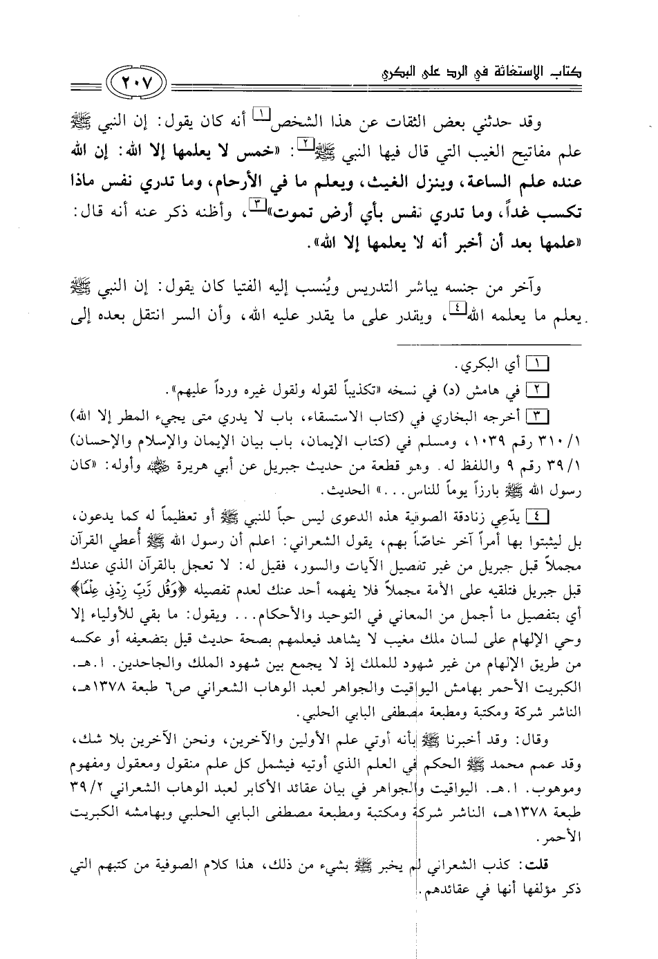 قلت: كذب الشعراني لم يخبر - صلى الله عليه وسلم - بشيء من ذلك، هذا كلام الصوفية من كتبهم التي ذكر مؤلفها أنها في عقائدهم.