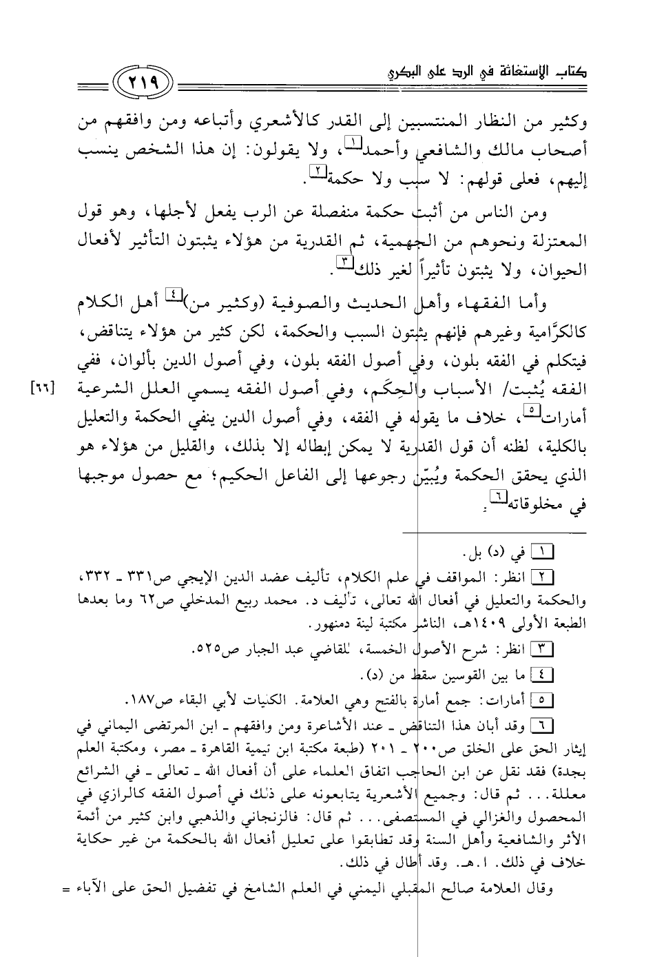 (¬2) انظر: المواقف في علم الكلام, تأليف عضد الدين الإيجي ص 331 - 332، والحكمة والتعليل في أفعال الله تعالي، تأليف د. محمد ربيع المدخلي ص 62 وما بعدها الطبعة الأولى 1409 هـ، الناشر مكتبة لينة دمنهور.