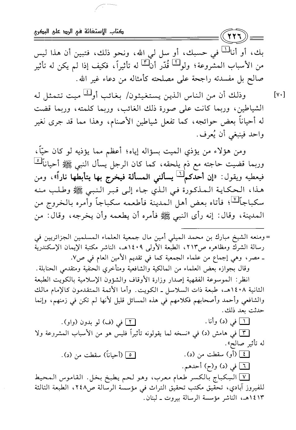 ومن هؤلاء من يؤذي الميت بسؤاله إياه؛ أعظم مما يؤذيه لو كان حيًّا، وربما قضيت حاجته مع ذم يلحقه، كما كان الرجل يسأل النبي - صلى الله عليه وسلم - أحيانًا (¬5) فيعطيه ويقول: "إن أحدكم (¬6) يسألني المسألة فيخرج بها يتأبطها نارًا", ومن هذا، الحكاية المذكورة في الذي جاء إلى قبر النبي - صلى الله عليه وسلم - وطلب منه سكباجًا (¬7)؛ فأتاه بعض أهل المدينة فأطعمه سكباجًا وأمره بالخروج من المدينة، وقال: إنه رأى النبي - صلى الله عليه وسلم - فأمره أن يطعمه وأن يخرجه، وقال: من
