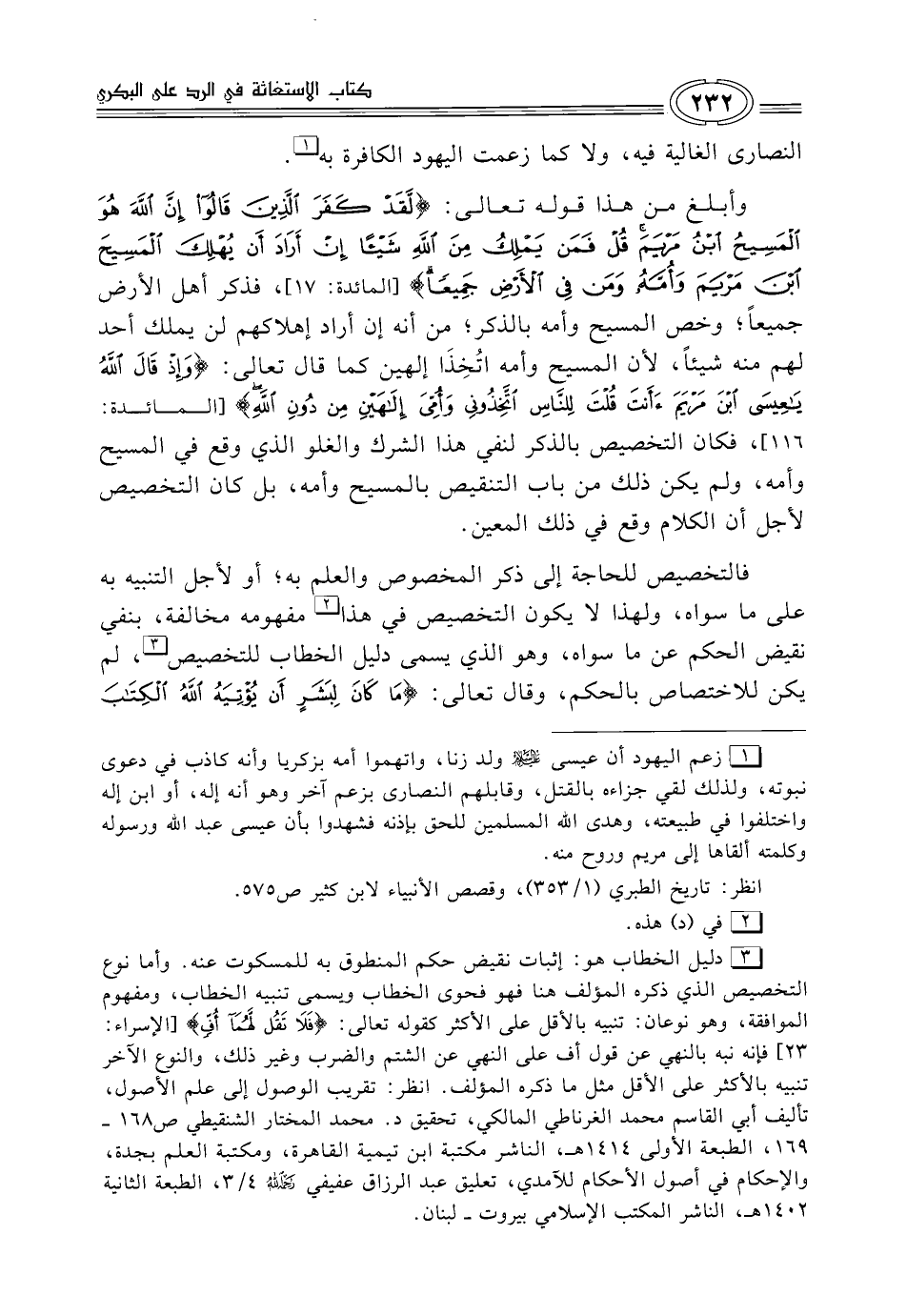 (¬1) زعم اليهود أن عيسى -عليه السلام- ولد زنا، واتهموا أمه بزكريا وأنه كاذب في دعوى نبوته، ولذلك لقي جزاءه بالقتل، وقابلهم النصارى بزعم آخر وهو أنه إله، أو ابن إله واختلفوا في طبيعته، وهدى الله المسلمين للحق بإذنه فشهدوا بأن عيسى عبد الله ورسوله وكلمته ألقاها إلى مريم وروح منه.
