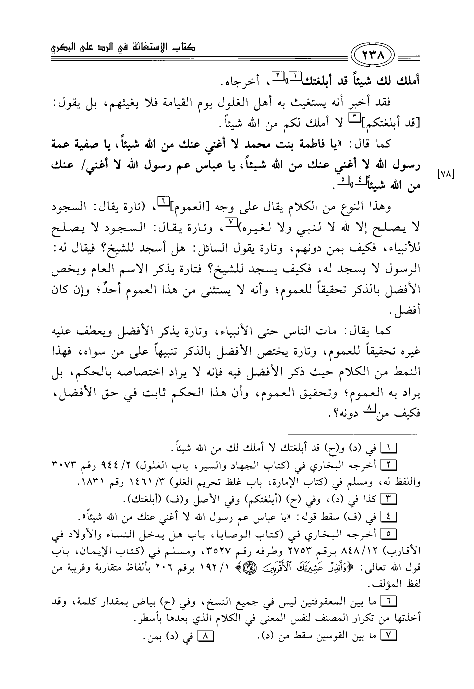 كما قال: "يا فاطمة بنت محمد لا أغني عنك من الله شيئًا، يا صفية عمة رسول الله لا أغنى عنك من الله شيئًا، يا عباس عم رسول الله لا أغني عنك من الله شيئًا (¬4) " (¬5).