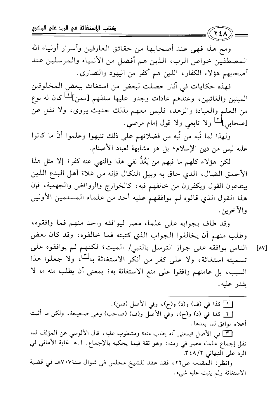 (¬3) في الأصل "بمعنى أنه يطلب منه" ومشطوب عليه، قال الألوسي عن المؤلف لما نقل إجماع علماء مصر في زمنه: وهو ثقة فيما يحكيه بالإجماع. أ. هـ غاية الأماني في الرد على النبهاني 2/ 348.