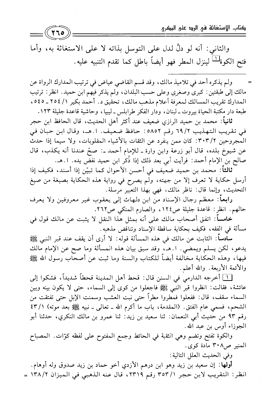 والثاني: أنه لو دلَّ لدل على التوسل بذاته لا على الاستغاثة به، وأما فتح الكوة (¬1) لينزل المطر فهو أيضاً باطل كما تقدم التنبيه عليه.