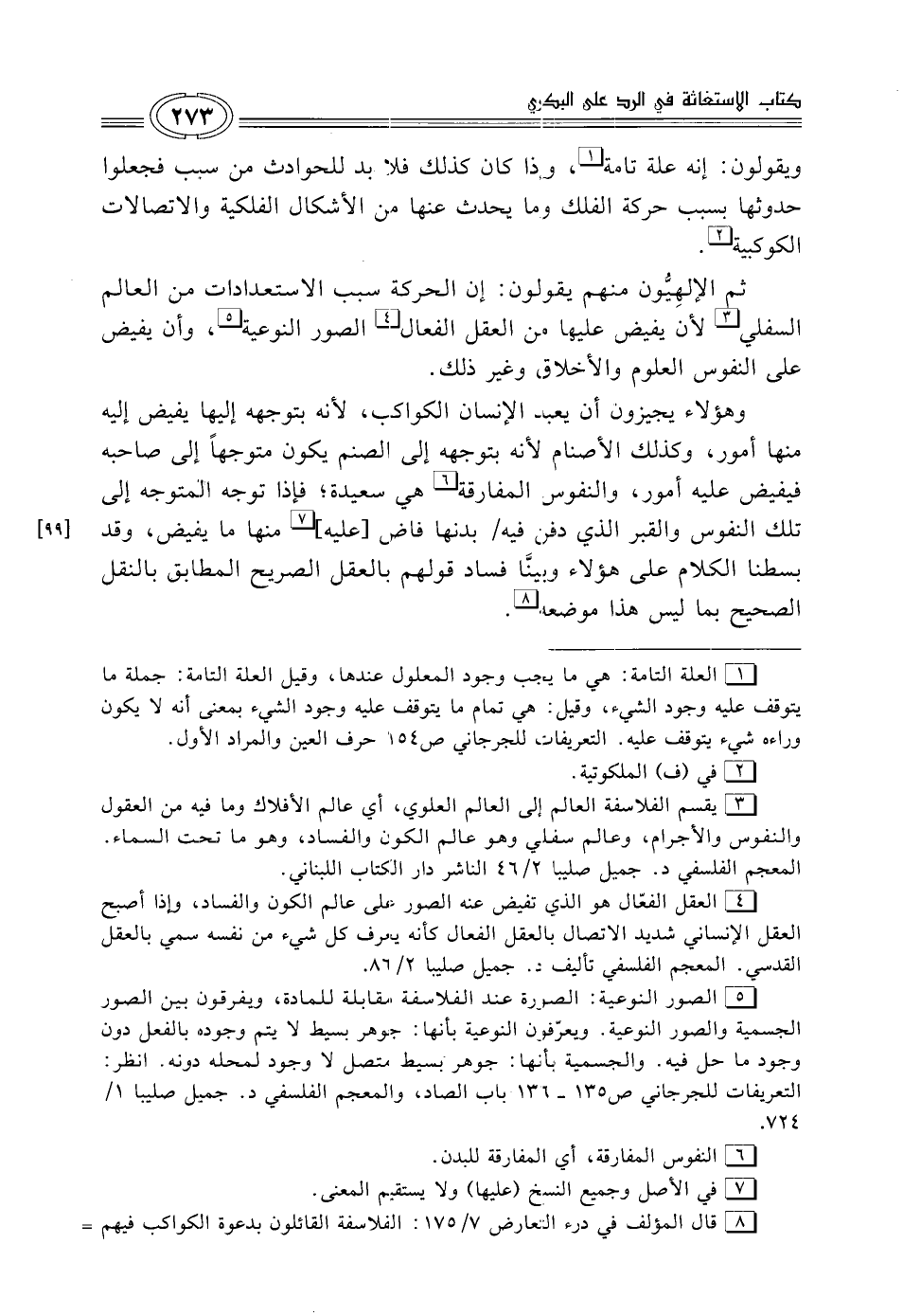 (¬8) قال المؤلف في درء التعارض 7/ 175: الفلاسفة القائلون بدعوة الكواكب فيهم =