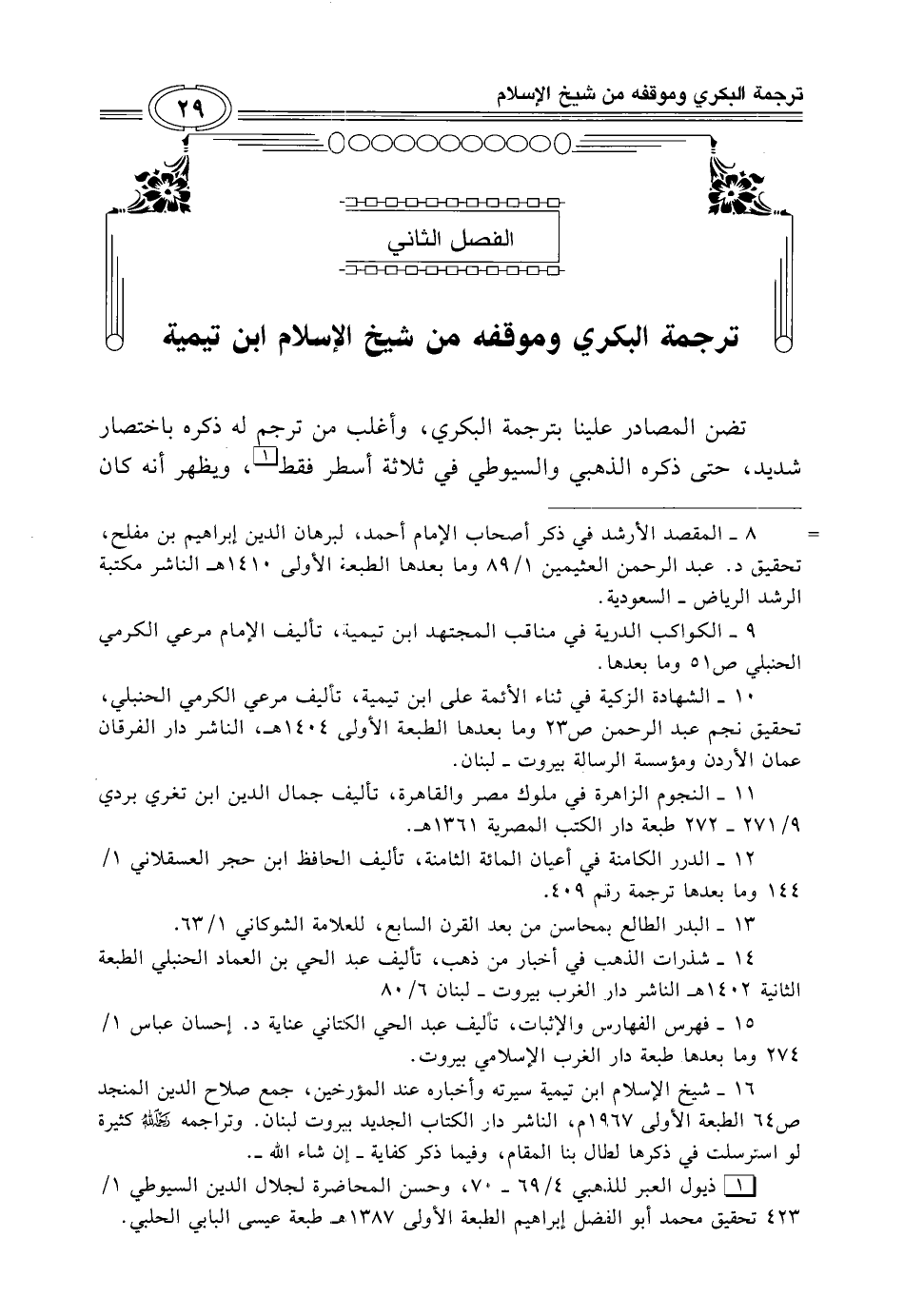الفصل الثاني: ترجمة البكري وموقفه من شيخ الإسلام ابن تيمية