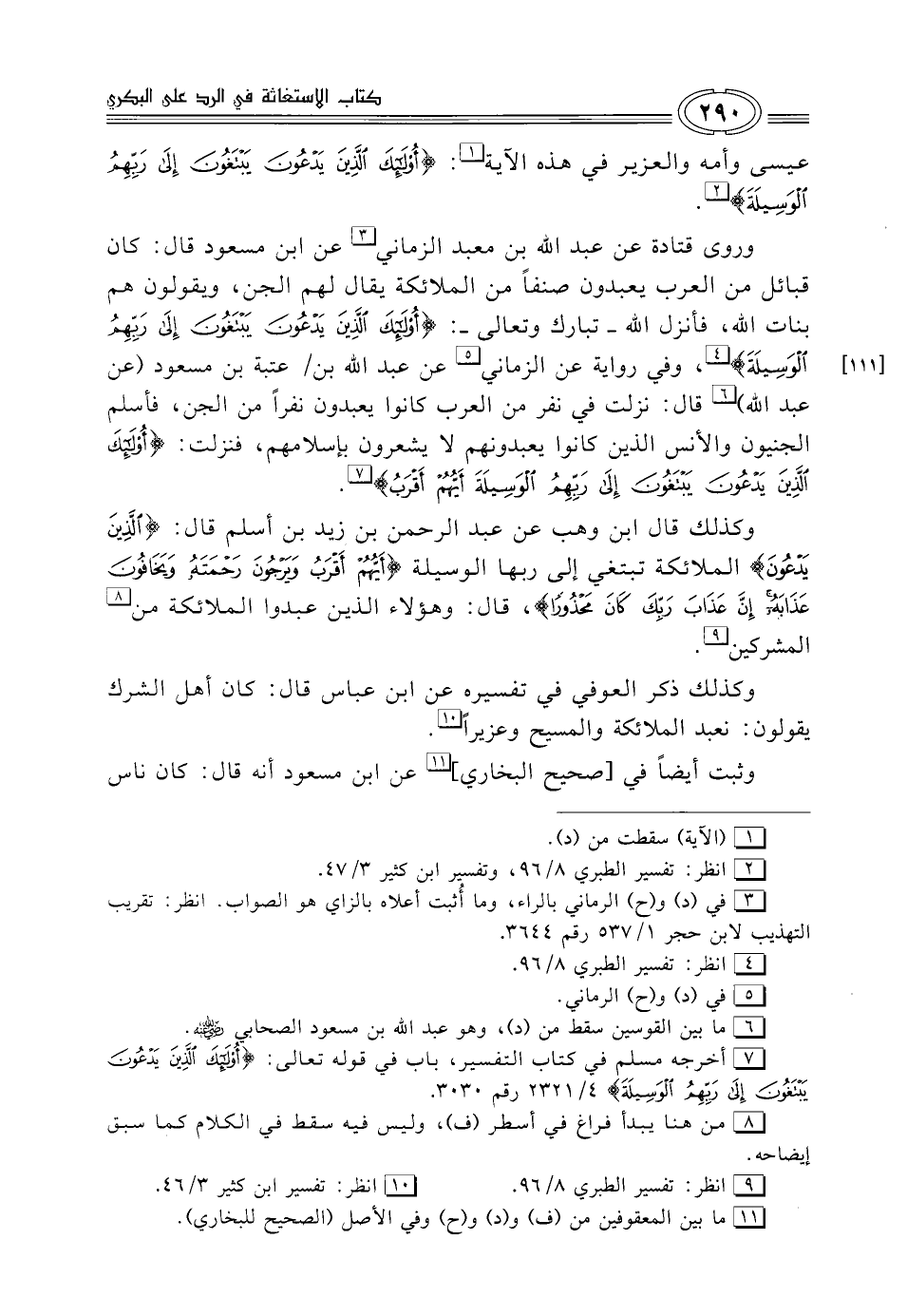 (¬7) أخرجه مسلم في كتاب التفسير، باب في قوله تعالى: {أُولَئِكَ الَّذِينَ يَدْعُونَ يَبْتَغُونَ إِلَى رَبِّهِمُ الْوَسِيلَةَ} 4/ 2321 رقم 3030.