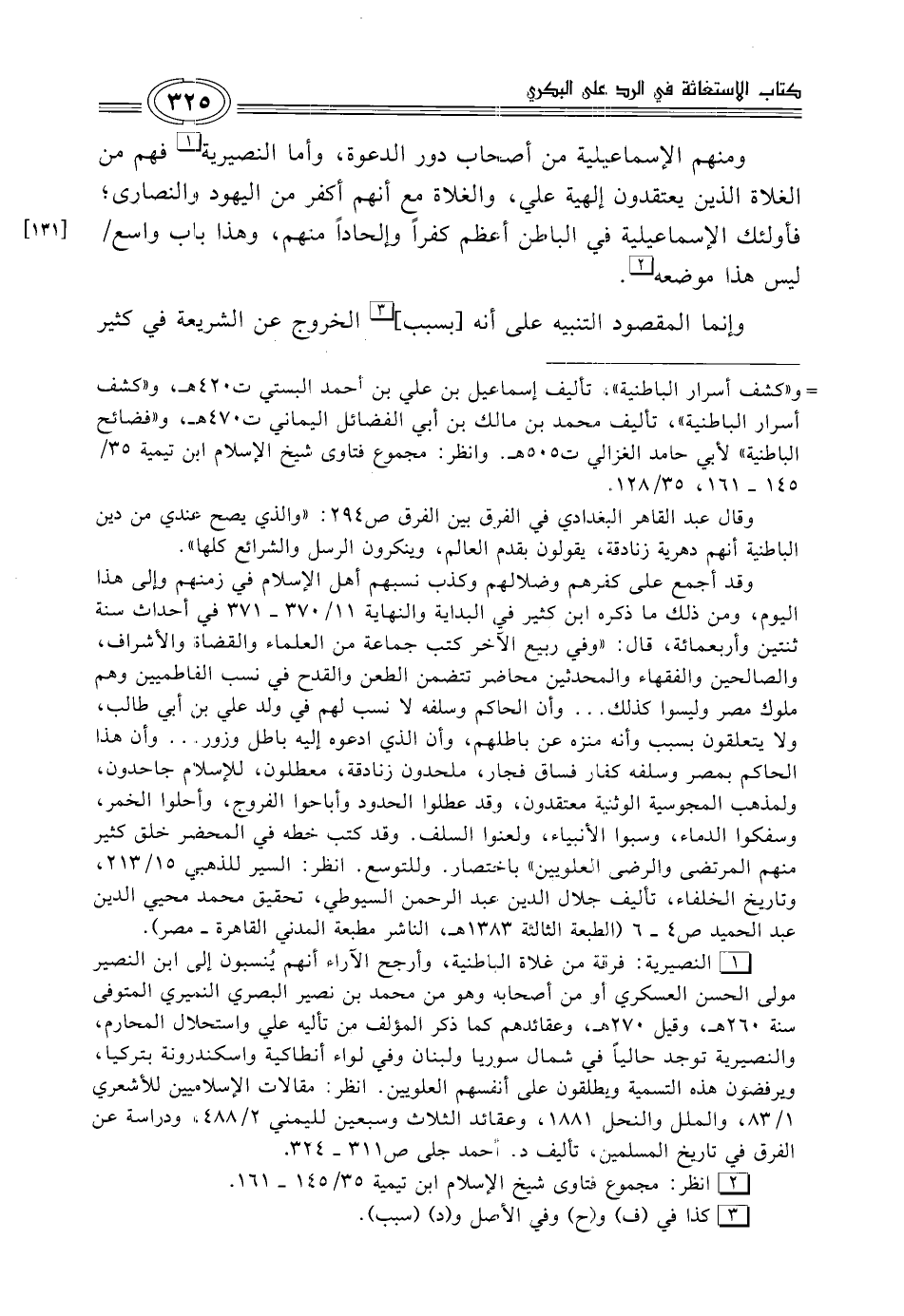= و"كشف أسرار الباطنية" تأليف إسماعيل بن علي بن أحمد البستي ت 420 هـ، و"كشف أسرار الباطنية"، تأليف محمد بن مالك بن أبي الفضائل اليماني ت 470 هـ، و"فضائح الباطنية" لأبي حامد الغزالي ت 505 هـ. وانظر: مجموع فتاوى شيخ الإسلام ابن تيمية 35/ 145 - 161، 35/ 128.