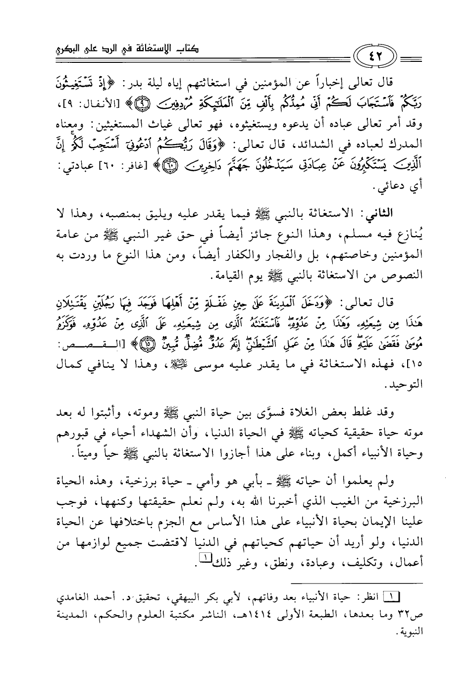 (¬1) انظر: حياة الأنبياء بعد وفاتهم، لأبي بكر البيهقي، تحقيق د. أحمد الغامدي ص 32 وما بعدها، الطبعة الأولى 1414 هـ الناشر مكتبة العلوم والحكم، المدينة النبوية.