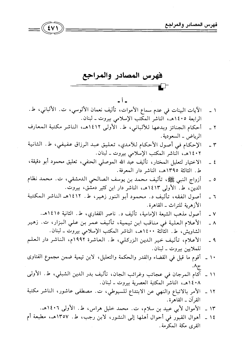 1 - الآيات البينات في عدم سماع الأموات، تأليف نعمان الألوسي، ت. الألباني، ط. الرابعة 1405 هـ، الناشر المكتب الإسلامي بيروت - لبنان.