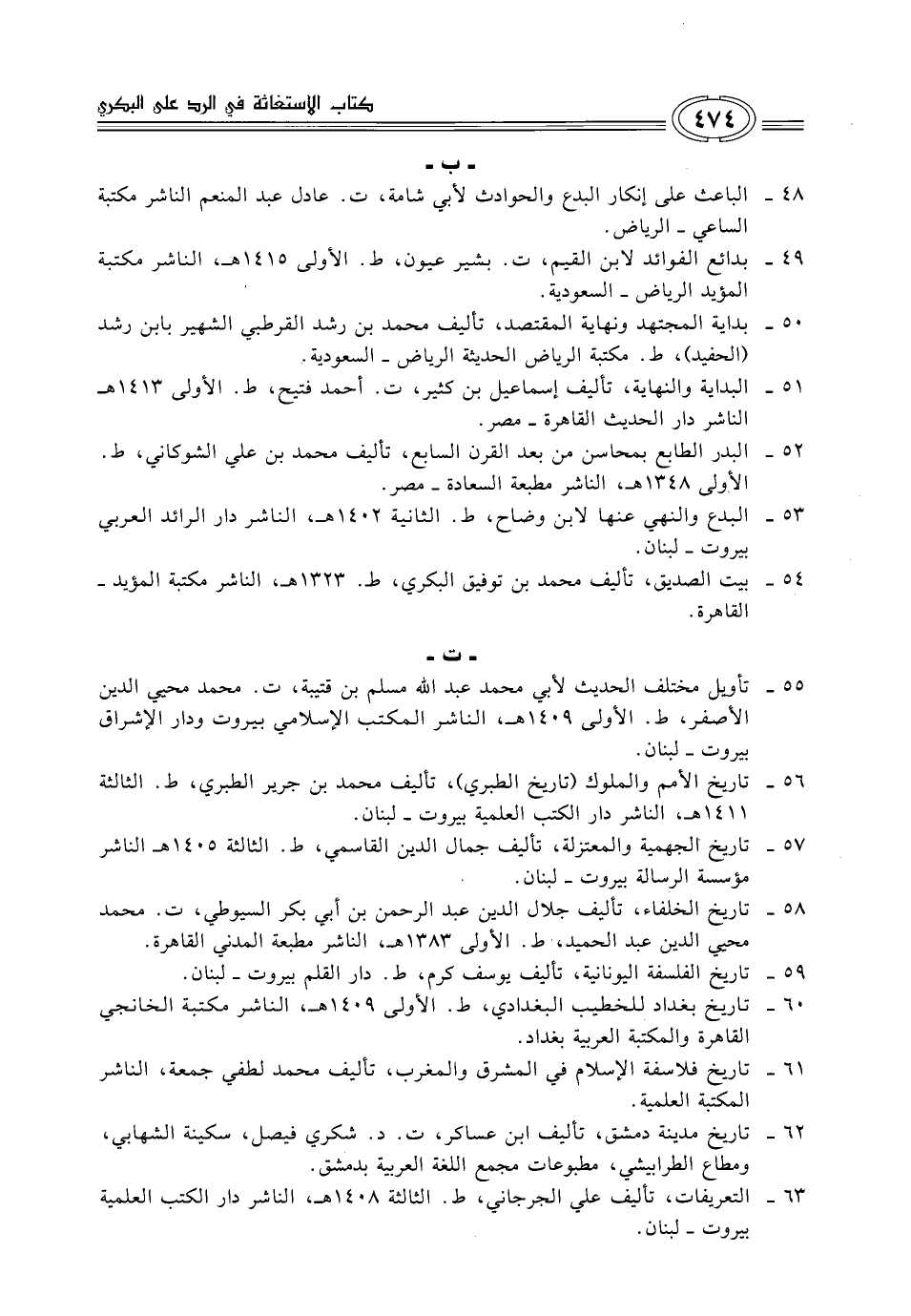 53 - البدع والنهي عنها لابن وضاح، ط. الثانية 1402 هـ، الناشر دار الرائد العربي بيروت - لبنان.