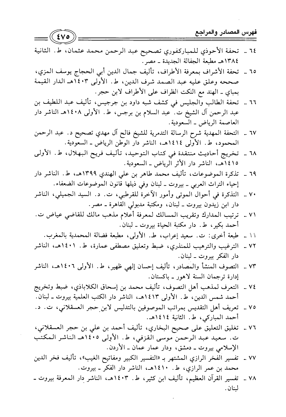 75 - تعريف أهل التقديس بمراتب الموصوفين بالتدليس لابن حجر العسقلاني، ت. د. أحمد المباركي، ط. الثانية 1414 هـ.