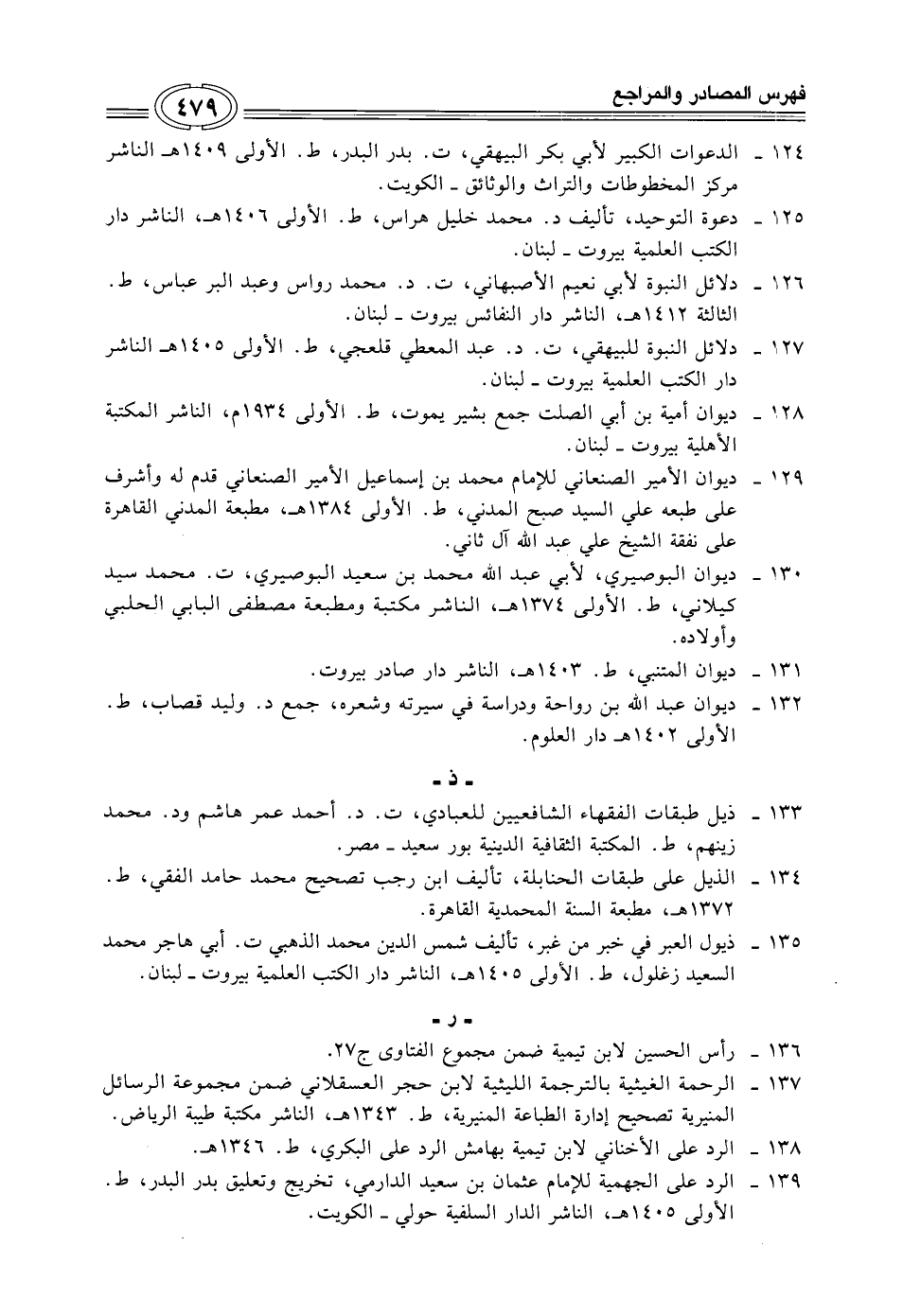 135 - ذيول العبر في خبر من غبر، تأليف شمس الدين محمد الذهبي ت. أبي هاجر محمد السعيد زغلول، ط. الأولى 1405 هـ , الناشر دار الكتب العلمية بيروت - لبنان.