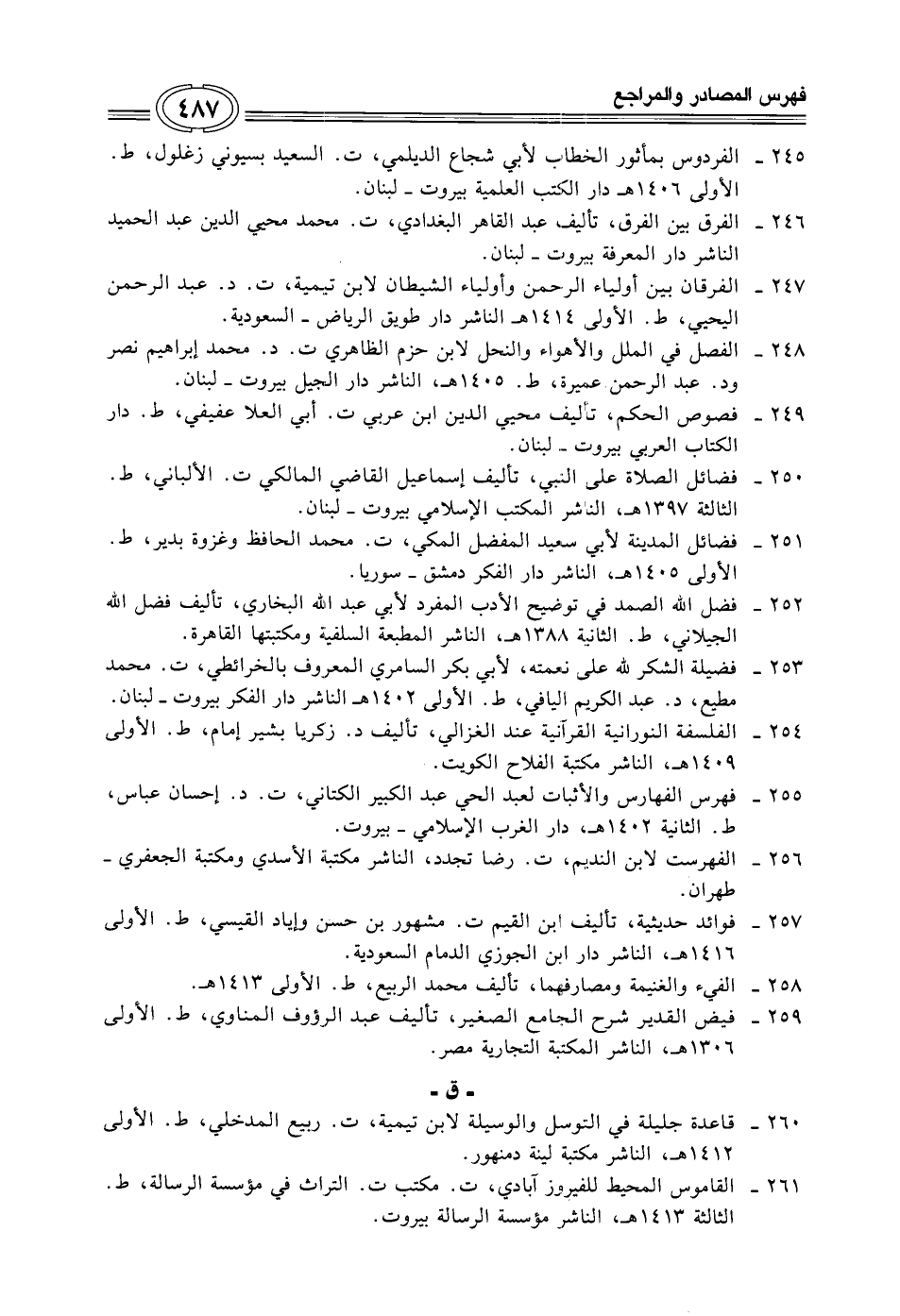 256 - الفهرست لابن النديم، ت. رضا تجدد، الناشر مكتبة الأسدي ومكتبة الجعفري - طهران.