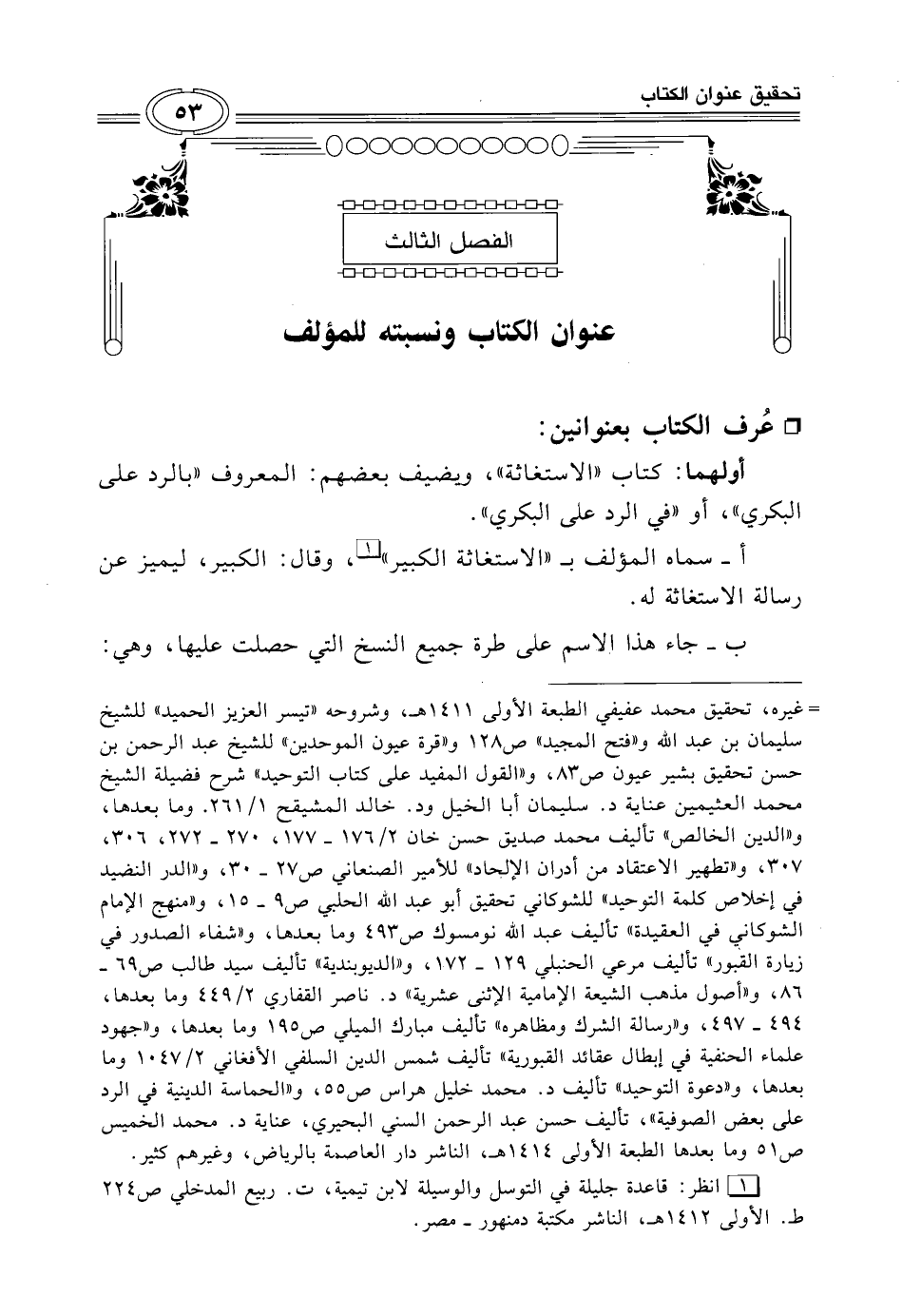 (¬1) انظر: قاعدة جليلة في التوسل والوسيلة لابن تيمية، ت. ربيع المدخلي ص 224 ط. الأولى 1412 هـ، الناشر مكتبة دمنهور - مصر.