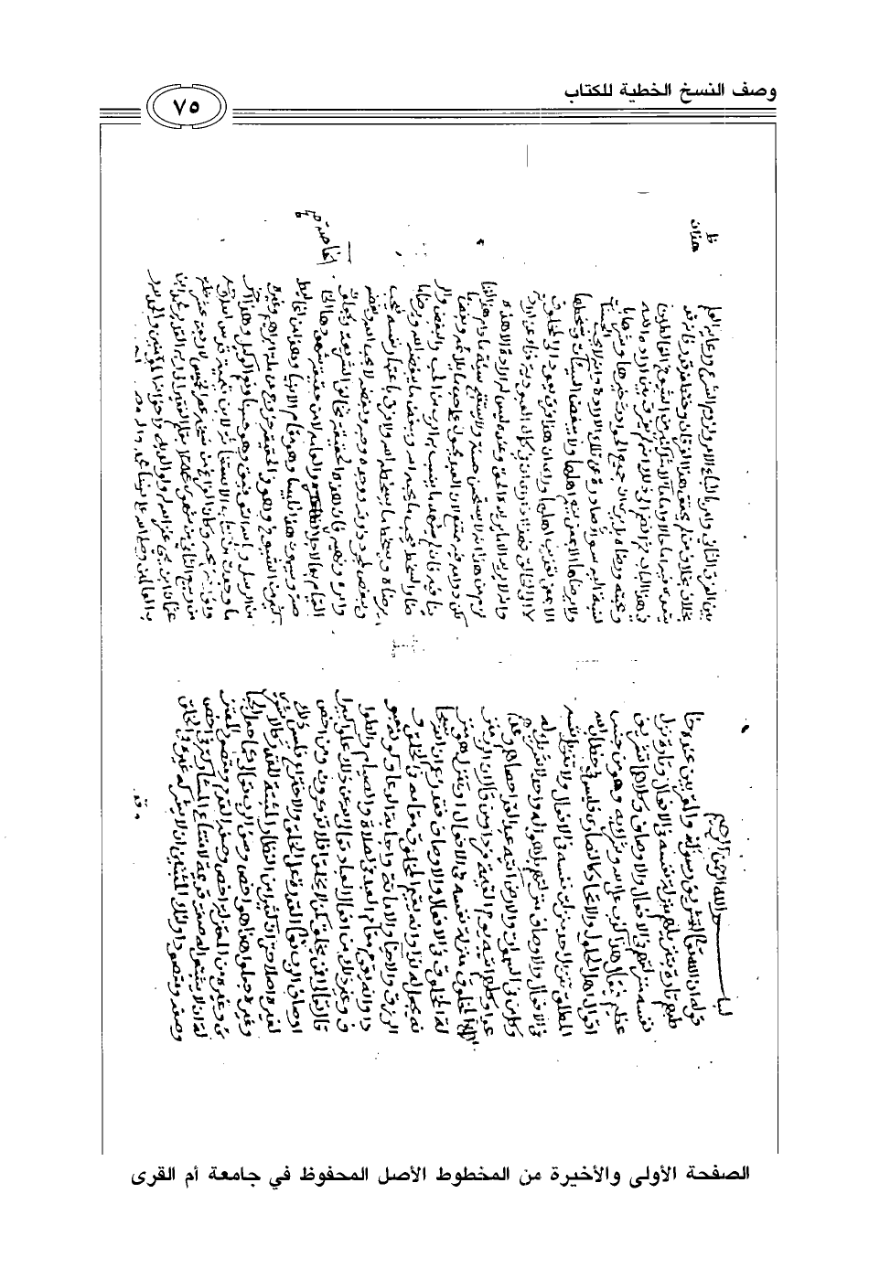 الصفحة الأولى والأخيرة من المخطوط الأصل المحفوظ في جامعة أم القرى