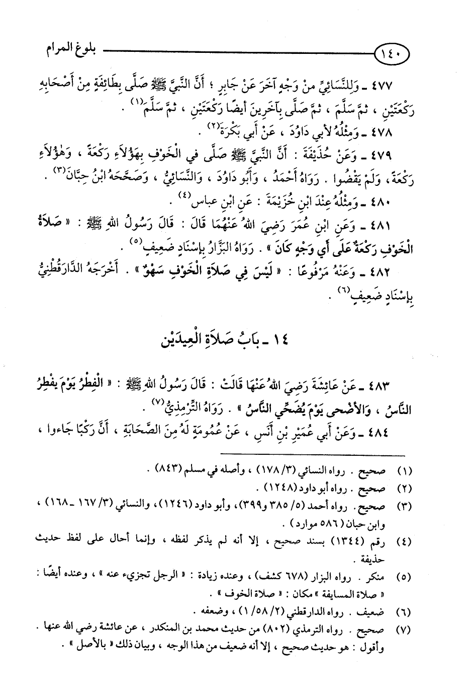479 - وَعَنْ حُذَيْفَةَ: أَنَّ النَّبِيَّ - صلى الله عليه وسلم - صَلَّى صَلَاةَ الْخَوْفِ بِهَؤُلَاءِ رَكْعَةً, وَبِهَؤُلَاءِ رَكْعَةً, وَلَمْ يَقْضُوا. رَوَاهُ أَحْمَدُ, وَأَبُو دَاوُدَ, وَالنَّسَائِيُّ, وَصَحَّحَهُ ابْنُ حِبَّانَ. (1)