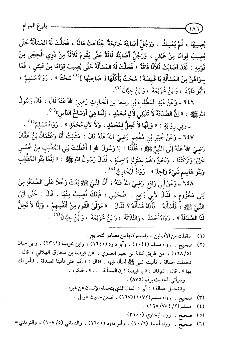 646 - وَعَنْ عَبْدِ الْمُطَّلِبِ بْنِ رَبِيعَةَ بْنِ الْحَارِثِ - رضي الله عنه - قَالَ: قَالَ رَسُولُ اللَّهِ - صلى الله عليه وسلم: «إِنَّ الصَّدَقَةَ لَا تَنْبَغِي لِآلِ مُحَمَّدٍ, إِنَّمَا هِيَ أَوْسَاخُ النَّاسِ». (1)