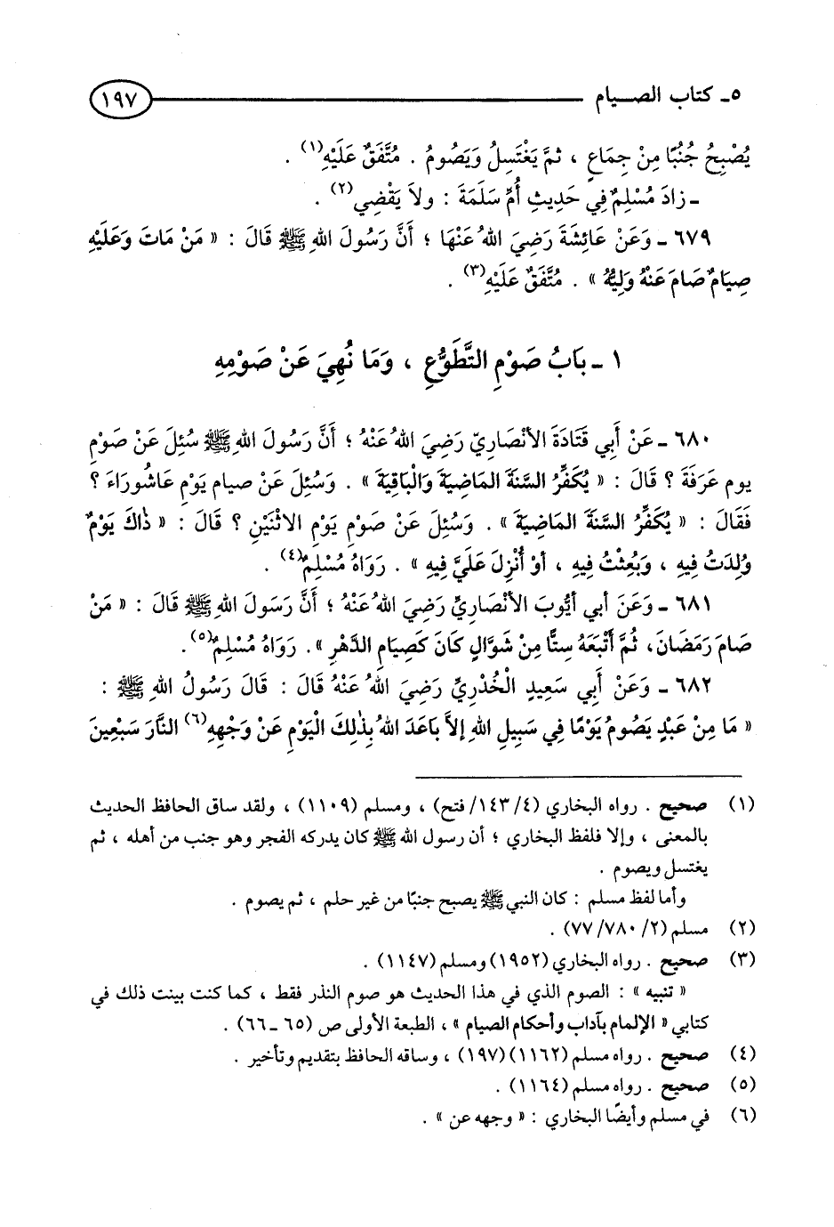 (1) - صحيح. رواه البخاري (1952) ومسلم (1147) «تنبيه»: الصوم الذي في هذا الحديث هو صوم النذر فقط، كما كنت بينت ذلك في كتابي «الإلمام بآداب وأحكام الصيام» الطبعة الأولى ص (65 - 66)