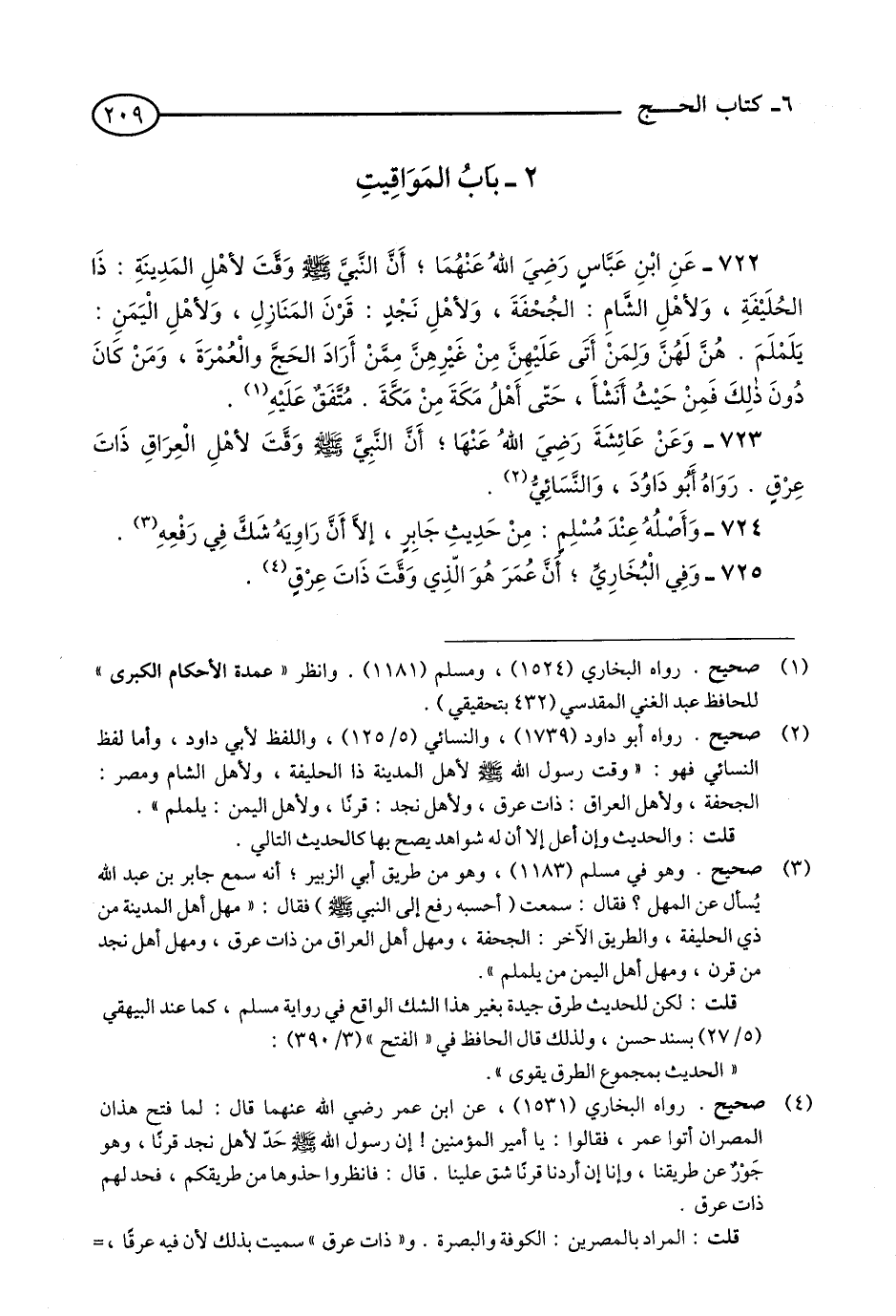 725 - وَفِي الْبُخَارِيِّ: أَنَّ عُمَرَ هُوَ الَّذِي وَقَّتَ ذَاتَ عِرْقٍ. (3)
