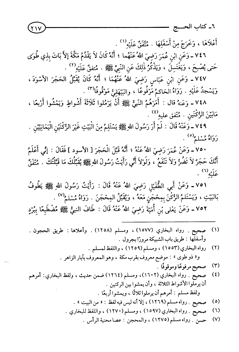 751 - وَعَنْ أَبِي الطُّفَيْلِ - رضي الله عنه - قَالَ: رَأَيْتُ رَسُولَ اللَّهِ - صلى الله عليه وسلم - يَطُوفُ بِالْبَيْتِ وَيَسْتَلِمُ الرُّكْنَ بِمِحْجَنٍ مَعَهُ, وَيُقْبِّلُ الْمِحْجَنَ. رَوَاهُ مُسْلِمٌ. (1)