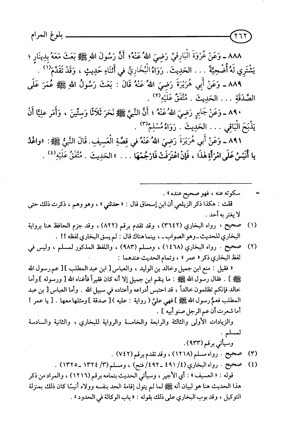 889 - وَعَنْ أَبِي هُرَيْرَةَ - رضي الله عنه - قَالَ: بَعَثَ رَسُولُ اللَّهِ - صلى الله عليه وسلم - عُمَرَ عَلَى الصَّدَقَةِ ... الْحَدِيثَ. مُتَّفَقٌ عَلَيْهِ. (1)