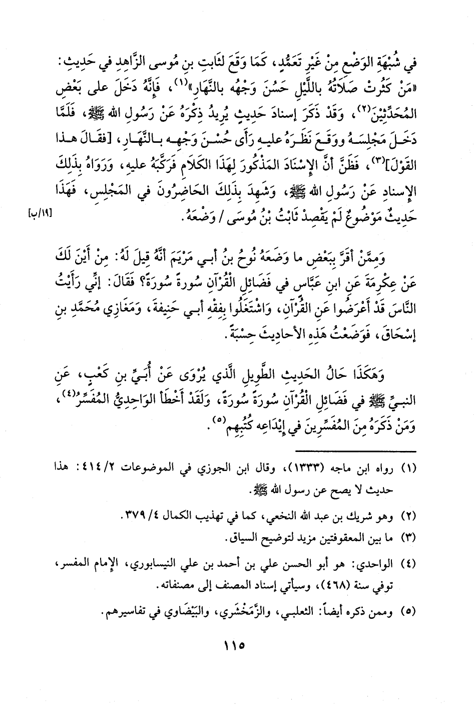 وهكذا حال الحديث الطويل الذي يروى عن أبي بن كعب، عن النبي صلى الله عليه وسلم في فضائل القرآن سورةً سورةً، ولقد أخطأ الواحدي المفسر، ومن ذكره من المفسرين في إيداعه كتبهم.