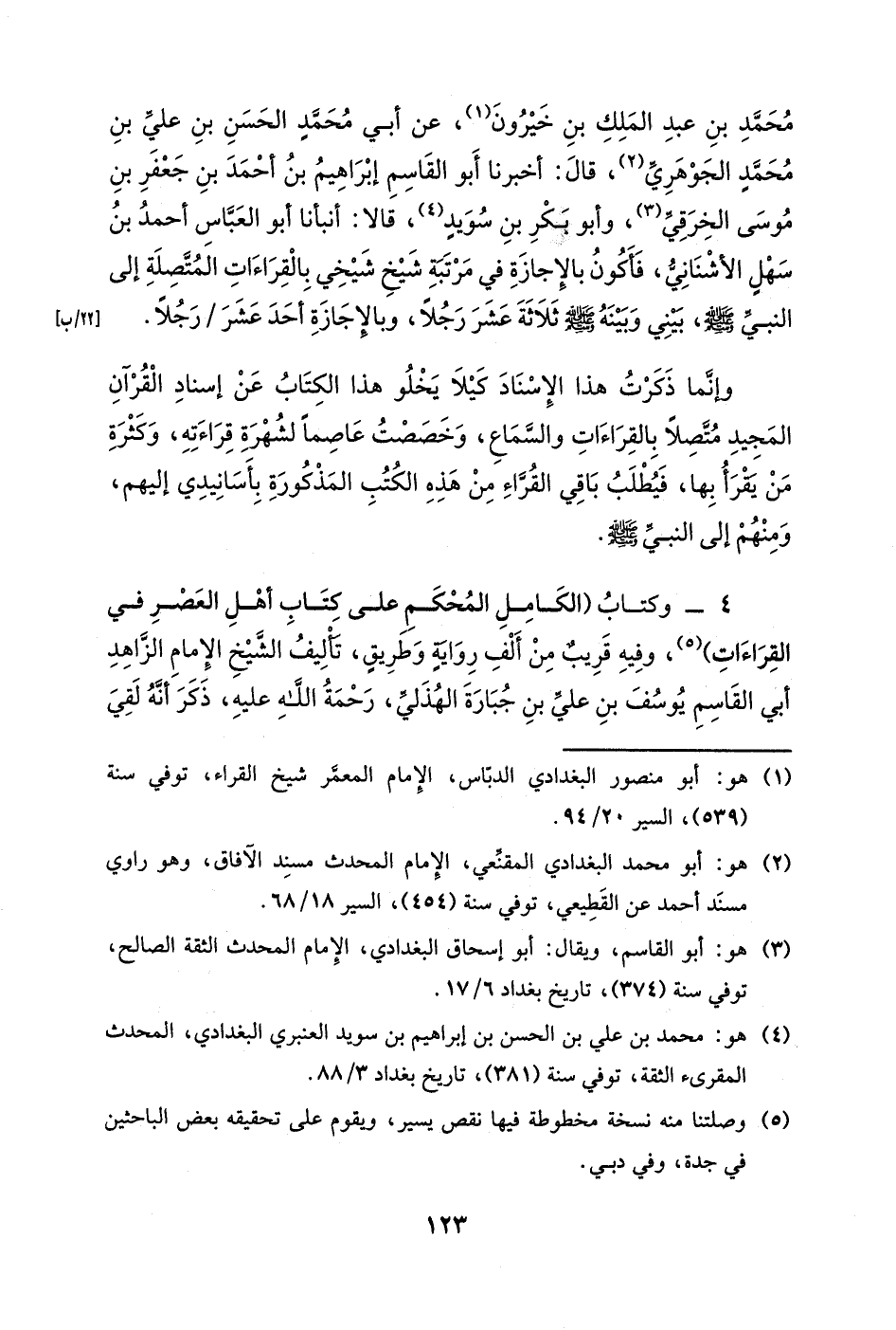 4- وكتاب (الكامل المحكم على كتاب أهل العصر في القراءات) ، وفيه قريبٌ من ألف روايةٍ وطريقٍ، تأليف الشيخ الإمام الزاهد أبي القاسم يوسف بن علي بن جبارة الهذلي، رحمة الله عليه، ذكر أنه لقي