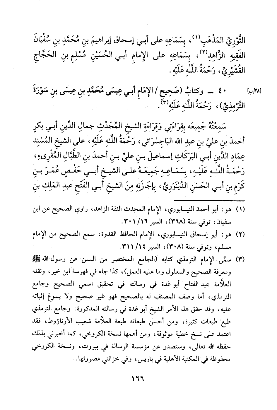 الثوري المذهب، بسماعه على أبي إسحاق إبراهيم بن محمد بن سفيان الفقيه الزاهد، بسماعه على الإمام أبي الحسين مسلم بن الحجاج القشيري، رحمة الله عليه.