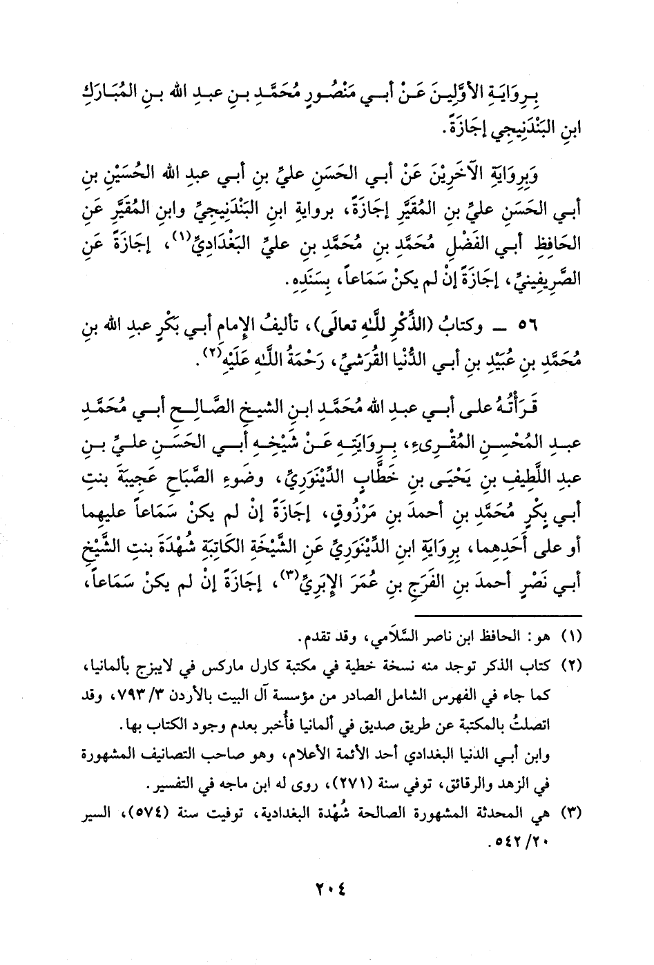وبرواية الآخرين عن أبي الحسن علي بن أبي عبد الله الحسين بن أبي الحسن علي بن المقير إجازةً، برواية ابن البندنيجي وابن المقير عن الحافظ أبي الفضل محمد بن محمد بن علي البغدادي، إجازةً عن الصريفيني، إجازةً إن لم يكن سماعاً، بسنده.