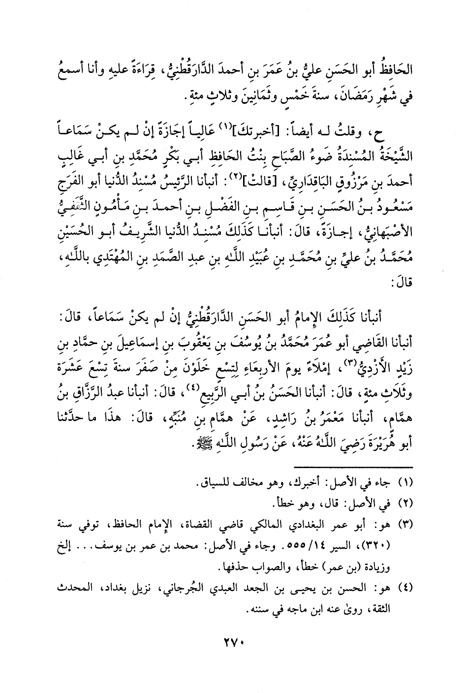 ح، وأرويه عن أبي البركات إسماعيل بن علي بن أحمد بن الطبال، وأبي عبد الله محمد بن أبي القاسم عبد الله بن عمر إجازةً، بروايتهما كذلك عن أبي منصور محمد بن عبد الله بن المبارك ابن البندنيجي، بروايته كذلك عن الحافظ أبي الفضل محمد بن ناصر بن محمد بن علي البغدادي، بروايته كذلك عن أبي القاسم علي بن أحمد بن محمد بن البسري، عن ابن بطة.