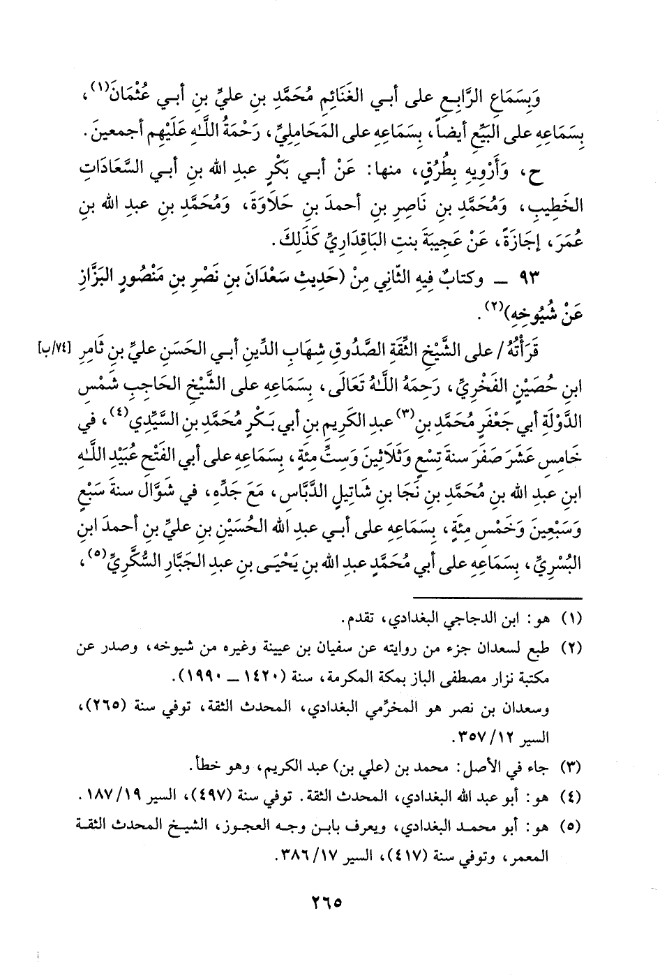 ح، وقرأته أيضاً على الشيخين: أبي محمدٍ يوسف بن عبد الصمد بن محمدٍ البزاز، وأبي عبد الله محمد بن عبد المحسن بن أبي الحسن الواعظ.