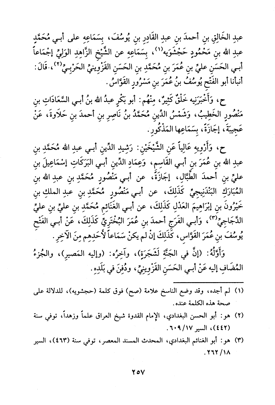 والشيخ رشيد الدين محمد بن أبي القاسم، وتقي الدين سليمان بن حمزة بن أحمد المقدسي، وغيرهم إجازةً، عن أبي محمد الأنجب بن أبي السعادات بن محمد الحمامي، وغيره، كذلك، عن أبي الفرج مسعود بن الحسن بن القاسم الثقفي، كذلك، عن أبي الحسين ابن المهتدي بالله، بسنده.