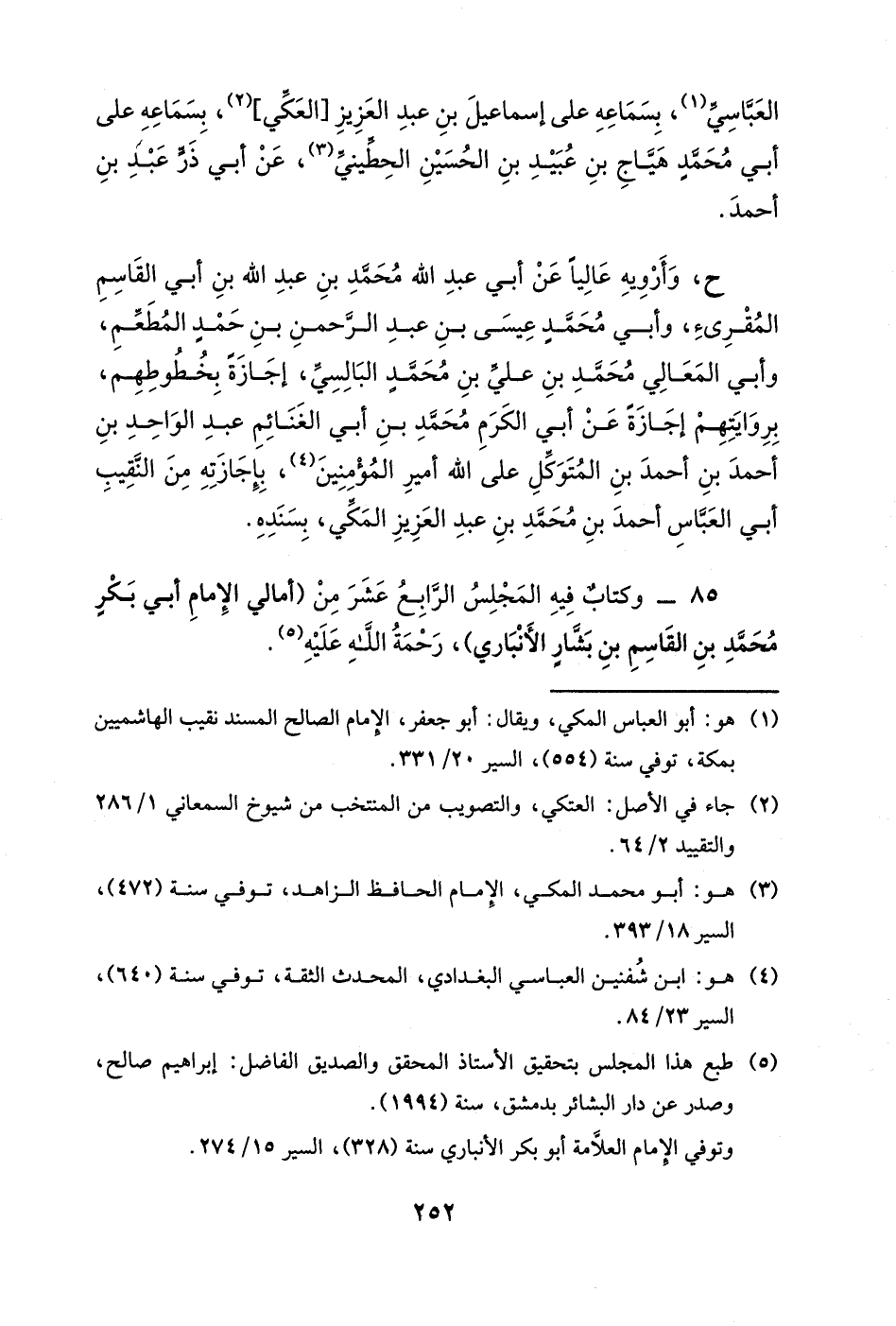 قرأته جميعه مرتين على الشيخ شهاب الدين أبي الحسن علي بن ثامر بن حصين الفخري، رحمه الله تعالى، بسماعه على الشيخ شمس الدولة أبي جعفر محمد بن عبد الكريم بن محمد بن أحمد بن أبي علي بن الحسن السيدي، سوى ما ذكر في الطبقة [ ... ] ، وهو من (باب من اسمه عبيدٌ) ، إلى (باب القاف من اسمه القاسم) قريب خمس ورقاتٍ من الأصل إن لم يكن قد أعاده القارئ بعد ذلك، وكان الشيخ يذكر شيئاً من هذا المعنى، وكان صادق اللهجة، رحمه الله، وجزاه عنا خيراً، بسماع من شيخه جميع الكتاب على أبي طالب زيد بن الحسن بن أبي طالبٍ الحسيني المديني، بسماعه على أم إبراهيم فاطمة بنت عبد الله بن أحمد بن القاسم بن عقيل الجوزدانية الأصبهانية، بسماعها على أبي بكرٍ محمد بن عبد الله بن أحمد بن ريذة، بسماعه على أبي القاسم سليمان بن أحمد بن أيوب الطبراني.
