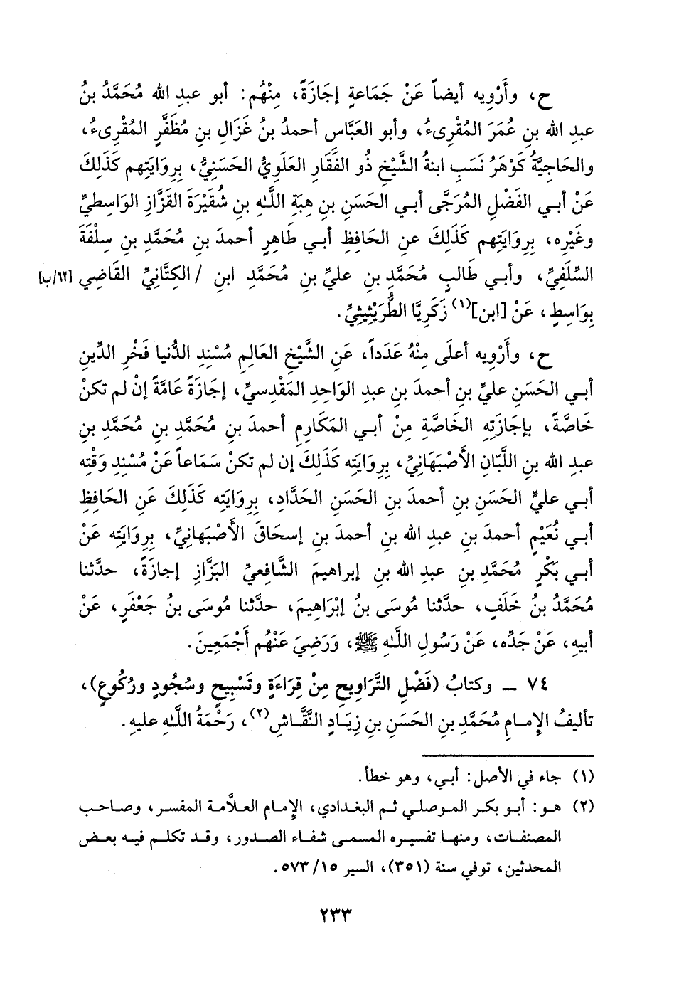 ومن أول الجزء، إلى الموضع المذكور، وهو قريب ثلثي الجزء، فبإجازته من ابن نبهان المذكور، وأول الجزء: (حدثني عمر بن محمدٍ، قال: أنبأنا أبو الهيثم، أنبأنا أحمد بن يحيى) ، بسماع ابن نبهان الكاتب جميع الجزء بتمامه على أبي الحسن بشرى بن عبد الله مولى فاتنٍ مولى أمير المؤمنين، قال: أنبأنا أبو بكر محمد بن محمد بن عبيد بن أحمد بن مخلدٍ الدقاق المعروف بالعسكري، في جمادى الأولى من سنة خمسٍ وثمانين وثلاث مئةٍ.