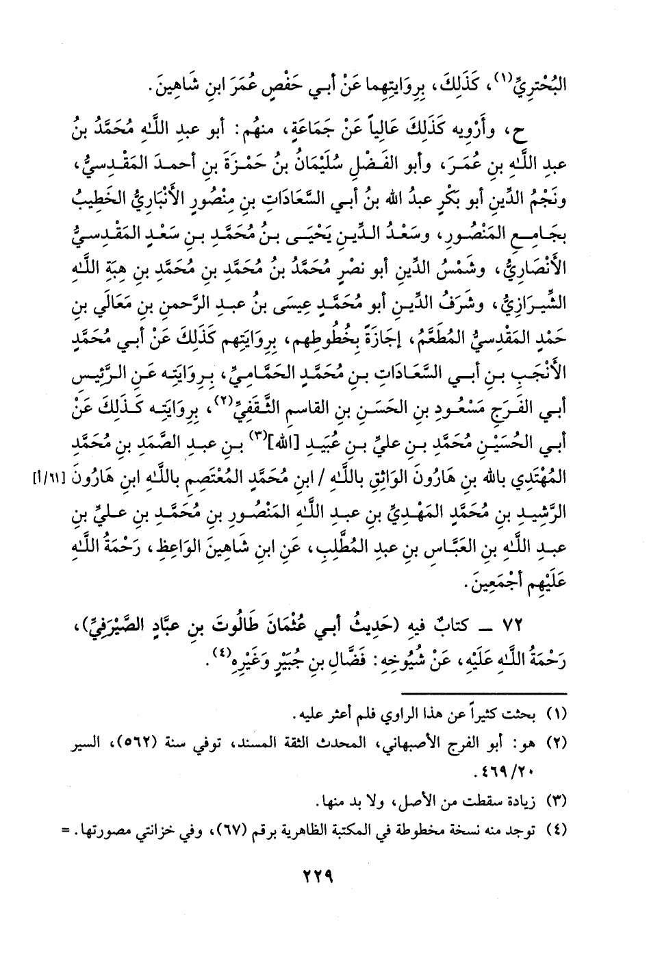 ح، ويرويه أبو عبد الله محمد بن أبي محمدٍ المذكور أيضاً، عن أبي الحسن علي بن عبد اللطيف بن يحيى بن خطاب الدينوري، وأبي نصر الأعز بن فضائل بن أبي نصر بن العليق، وعجيبة بنت أبي بكر محمد بن أبي غالب بن مرزوقٍ، إجازةً إن لم يكن سماعاً على أحدهم، بروايتهم كذلك عن الكاتبة فخر النساء [شهدة] بنت أبي نصرٍ أحمد بن