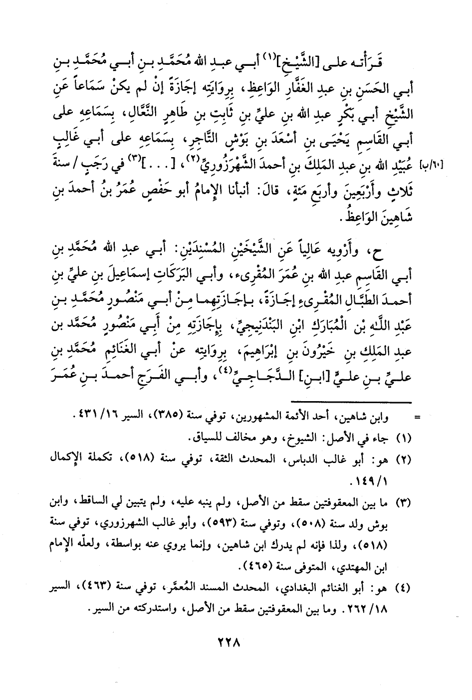 ح، وأرويه من طرقٍ كثيرةٍ عن خلقٍ، منها: عن أبي عبد الله محمد بن عبد الله بن عمر بن أبي القاسم المقرئ، إجازةً عن هؤلاء الشيوخ الثلاثة كذلك، عن شهدة بنت الإبري، بسندها المذكور.