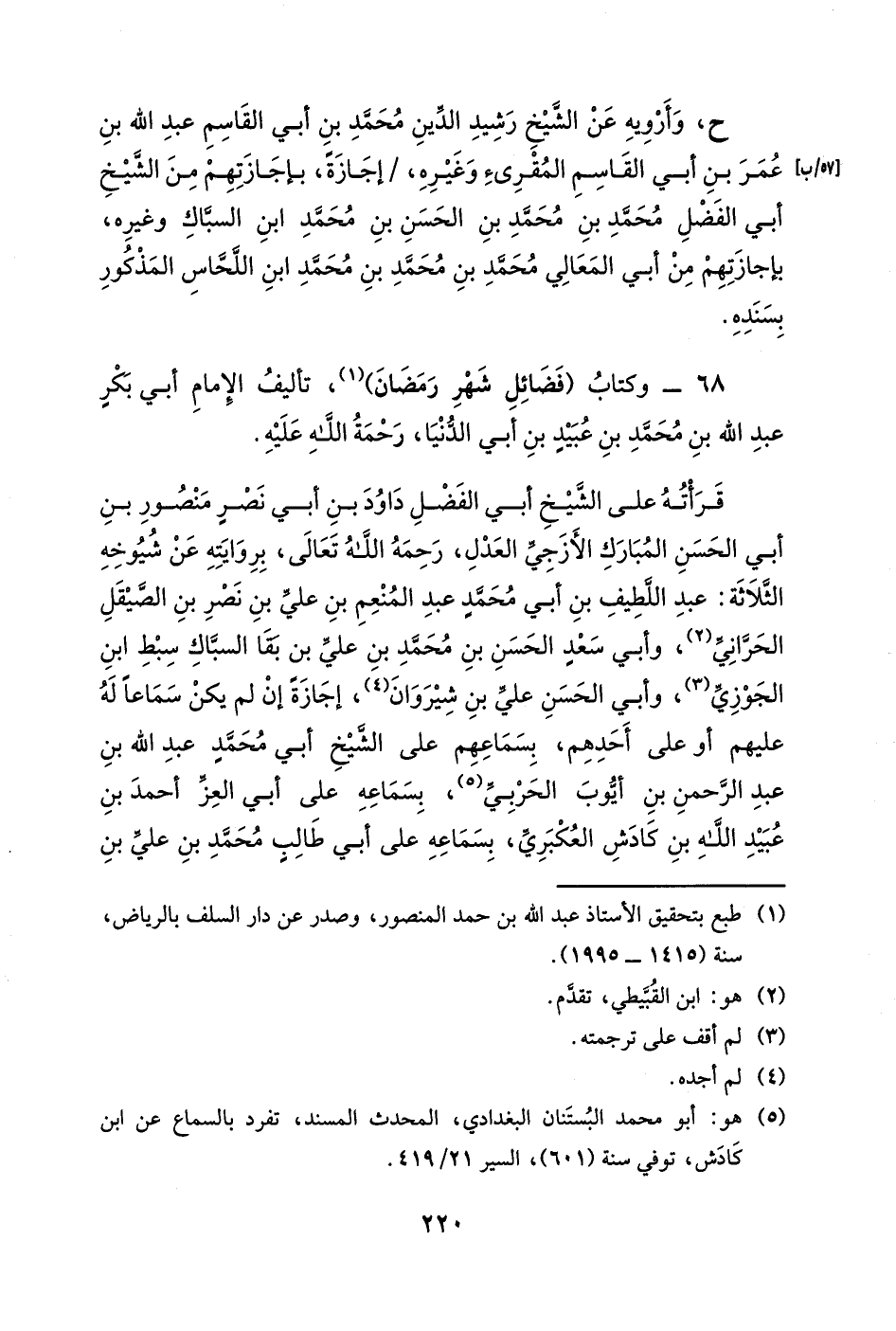 وبسماع الثاني على أبي المظفر علي بن أحمد بن محمد بن الكرخي، بسماعهما على أبي بكر الطريثيثي، بسماعه على الحمامي، بسماعه على المؤلف.