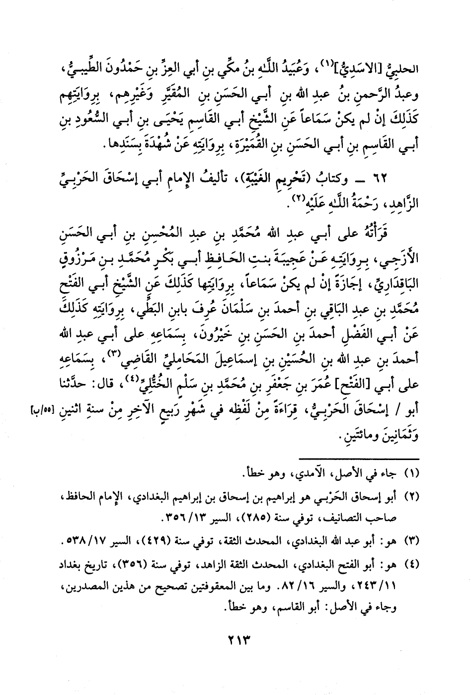 وبسماع الثالث على أبي علي الحسن بن محمد بن عبد العزيز التككي، بسماعهما على أبي علي بن شاذان.