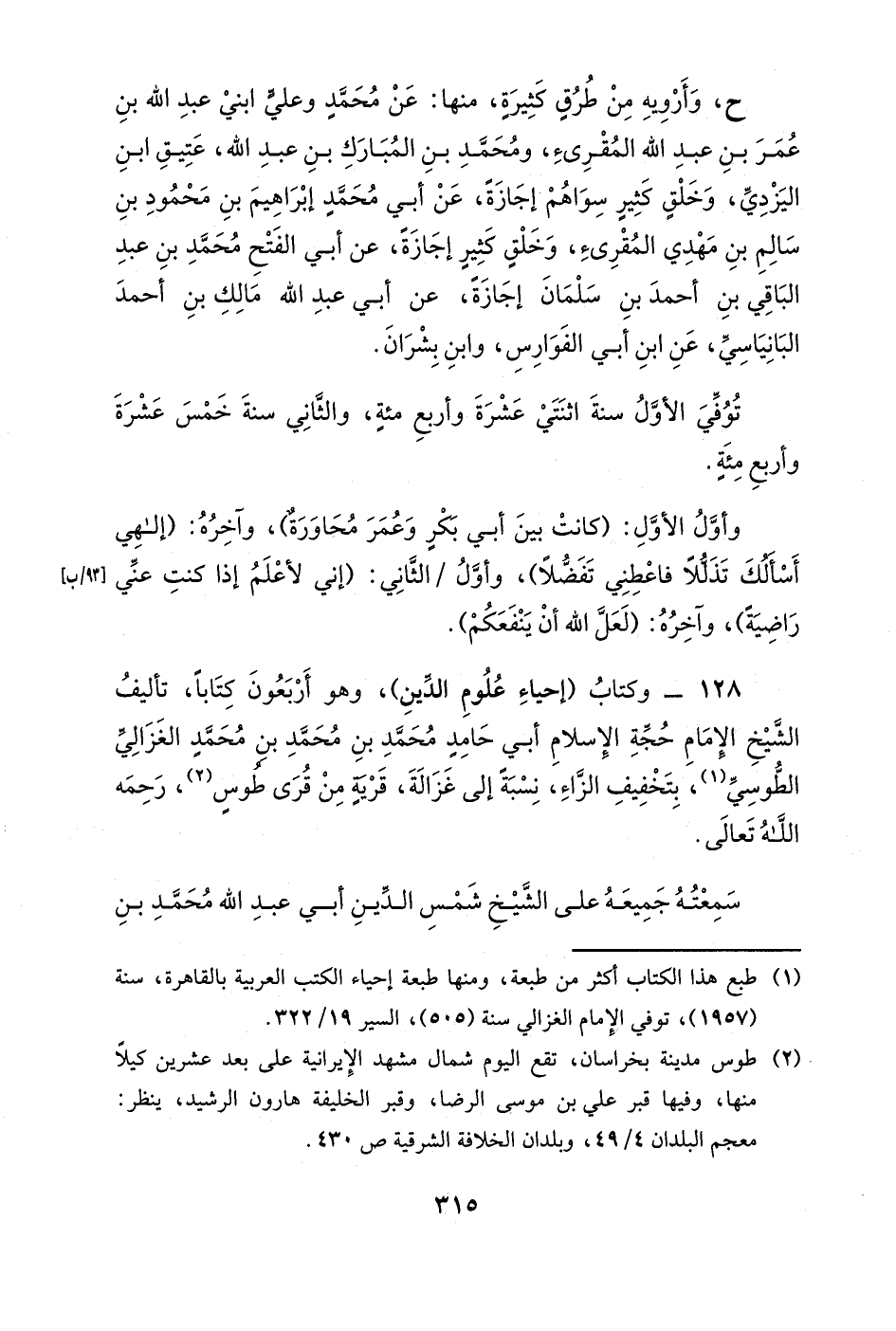 128- وكتاب (إحياء علوم الدين) ، وهو أربعون كتاباً، تأليف الشيخ الإمام حجة الإسلام أبي حامدٍ محمد بن محمد بن محمد الغزالي الطوسي، بتخفيف الزاء، نسبةً إلى غزالة، قريةٍ من قرى طوسٍ، رحمه الله تعالى.