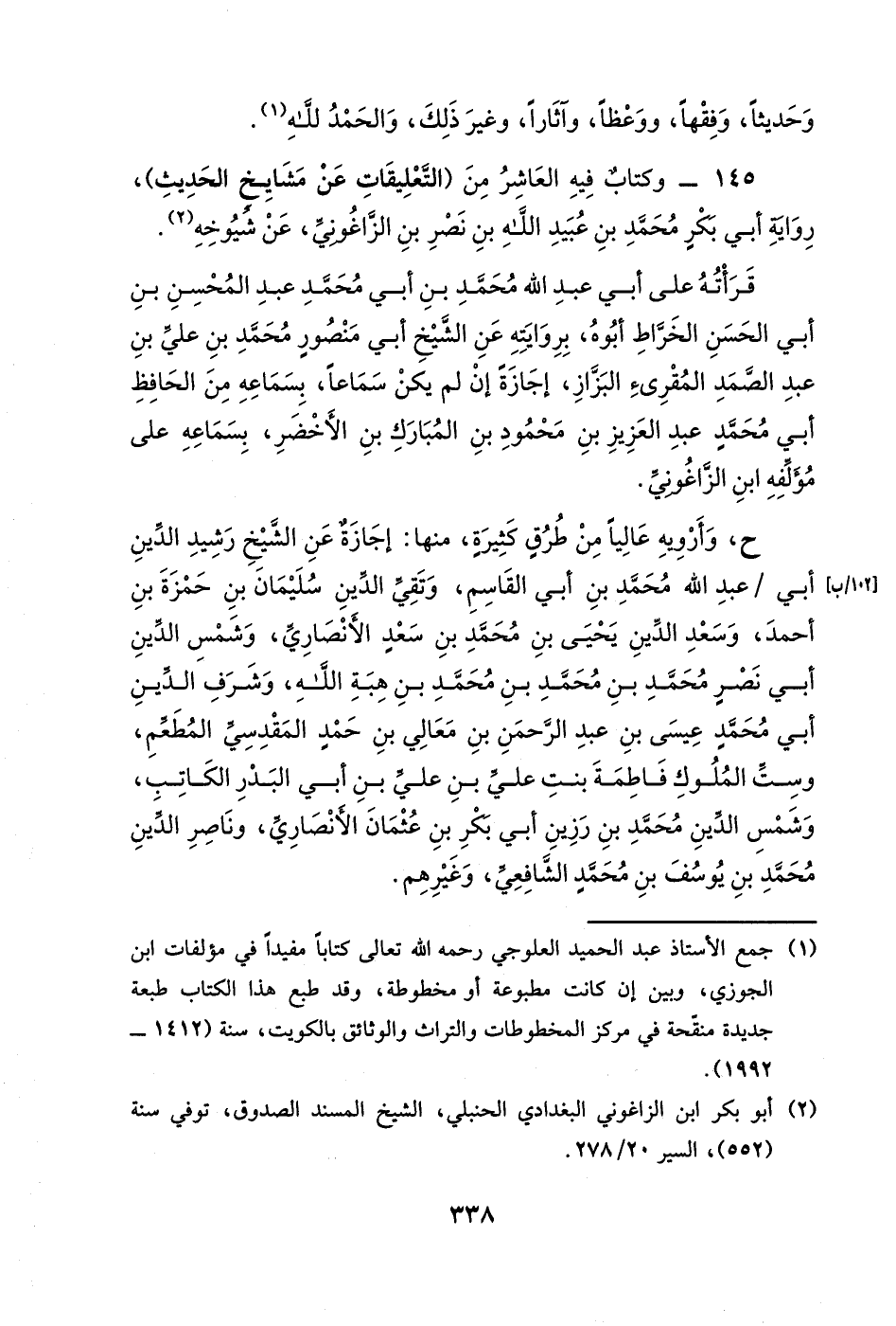 145- وكتابٌ فيه العاشر من (التعليقات عن مشايخ الحديث) ، رواية أبي بكرٍ محمد بن عبيد الله بن نصر بن الزاغوني، عن شيوخه.