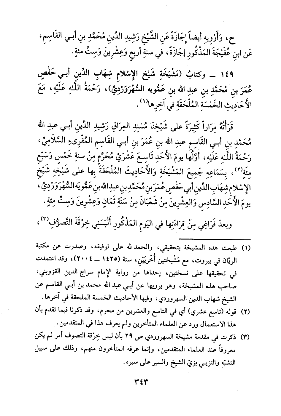 149- وكتاب (مشيخة شيخ الإسلام شهاب الدين أبي حفصٍ عمر بن محمد بن عبد الله بن عمويه السهروردي) ، رحمة الله عليه، مع الأحاديث الخمسة الملحقة في آخرها.