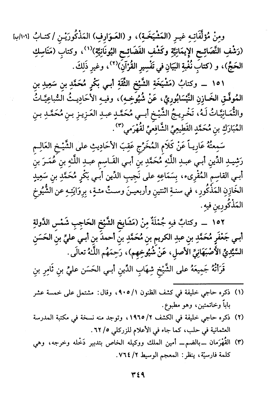 152- وكتابٌ فيه جملةٌ من (مشايخ الشيخ الحاجب شمس الدولة أبي جعفر محمد بن عبد الكريم بن محمد بن أحمد بن أبي علي بن الحسن السيدي الأصبهاني الأصل، عن شيوخهم) ، رحمهم الله تعالى.