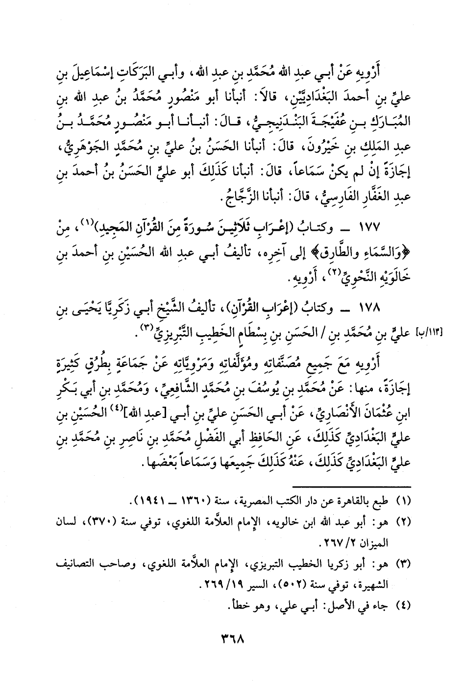 177- وكتاب (إعراب ثلاثين سورة من القرآن المجيد) ، من {والسماء والطارق} إلى آخره، تأليف أبي عبد الله الحسين بن أحمد بن خالويه النحوي، أرويه.
