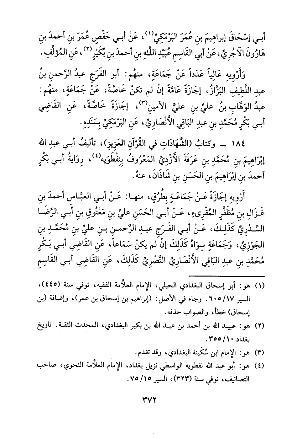 184- وكتاب (الشهادات في القرآن العزيز) ، تأليف أبي عبد الله إبراهيم بن محمد بن عرفة الأزدي المعروف بنفطويه، رواية أبي بكر أحمد بن إبراهيم بن الحسن بن شاذان، عنه.