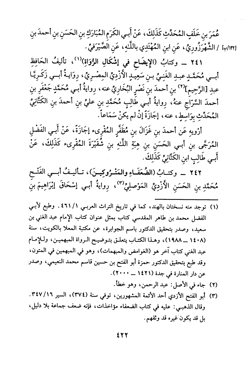 242- وكتاب (الضعفاء والمتروكين) ، تأليف أبي الفتح محمد بن الحسن الأزدي الموصلي، رواية أبي إسحاق إبراهيم بن