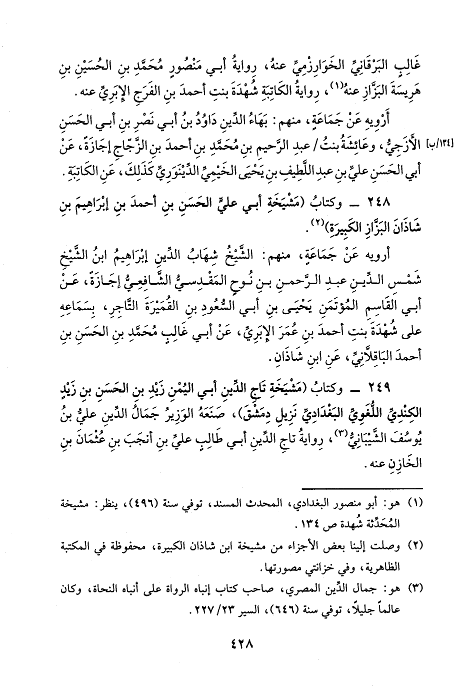 249- وكتاب (مشيخة تاج الدين أبي اليمن زيد بن الحسن بن زيدٍ الكندي اللغوي البغدادي نزيل دمشق) ، صنعه الوزير جمال الدين علي بن يوسف الشيباني، رواية تاج الدين أبي طالبٍ علي بن أنجب بن عثمان بن الخازن عنه.