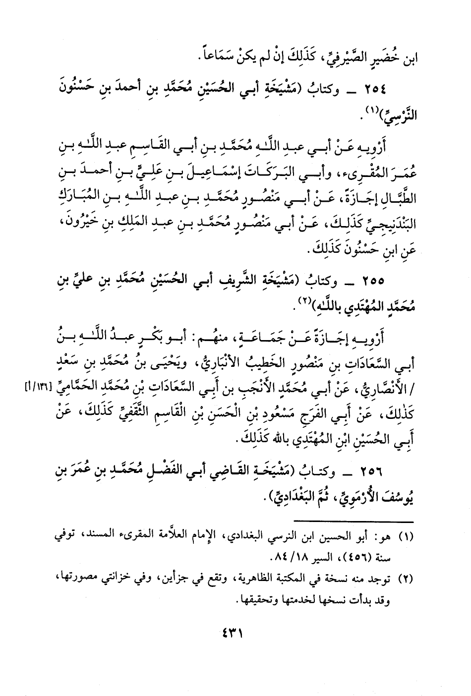 254- وكتاب (مشيخة أبي الحسين محمد بن أحمد بن حسنون النرسي) .
