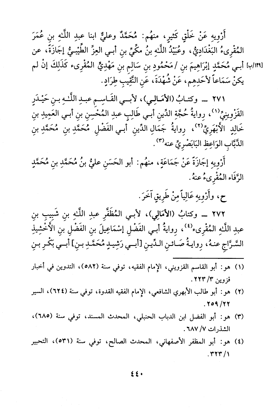 271- وكتاب (الأمالي) ، لأبي القاسم عبد الله بن حيدر القزويني، رواية حجة الدين أبي طالبٍ عبد المحسن بن أبي العميد بن خالدٍ الأبهري، رواية جمال الدين أبي الفضل محمد بن محمد بن الدباب الواعظ البابصري عنه.