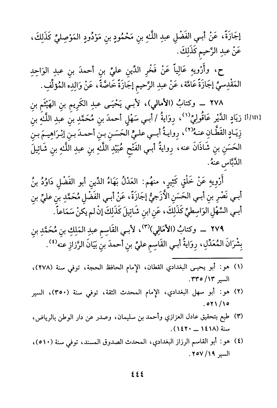278- وكتاب (الأمالي) ، لأبي يحيى عبد الكريم بن الهيثم بن زياد الدير عاقولي، رواية أبي سهلٍ أحمد بن محمد بن عبد الله بن زيادٍ القطان عنه، رواية أبي علي الحسن بن أحمد بن إبراهيم بن الحسن بن شاذان عنه، رواية أبي الفتح عبيد الله بن عبد الله بن شاتيل الدباس عنه.