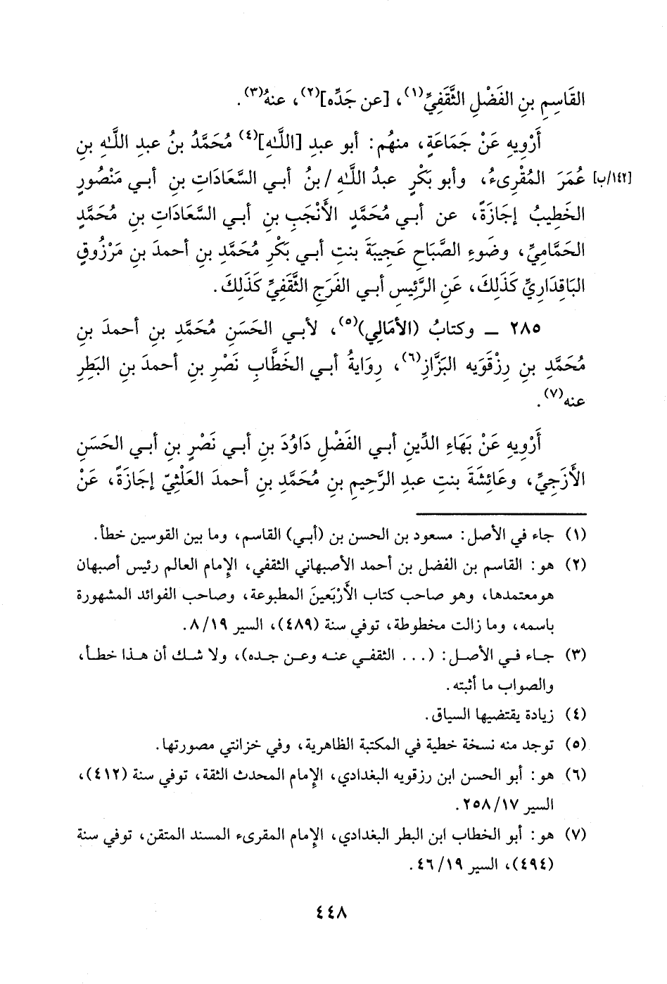 285- وكتاب (الأمالي) ، لأبي الحسن محمد بن أحمد بن محمد بن رزقويه البزاز، رواية أبي الخطاب نصر بن أحمد بن البطر عنه.